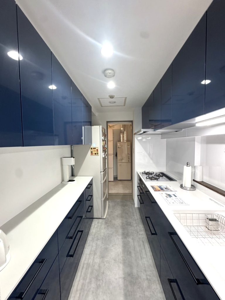 キッチンは高級感のある光沢扉に、お色はネイビーをチョイス。