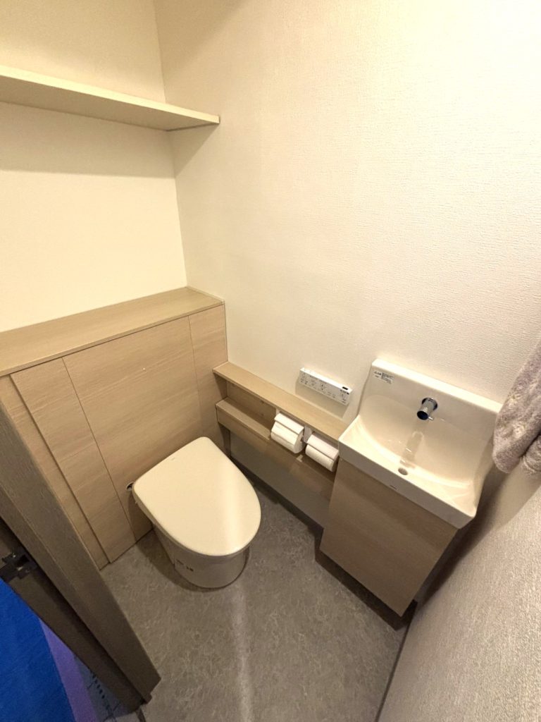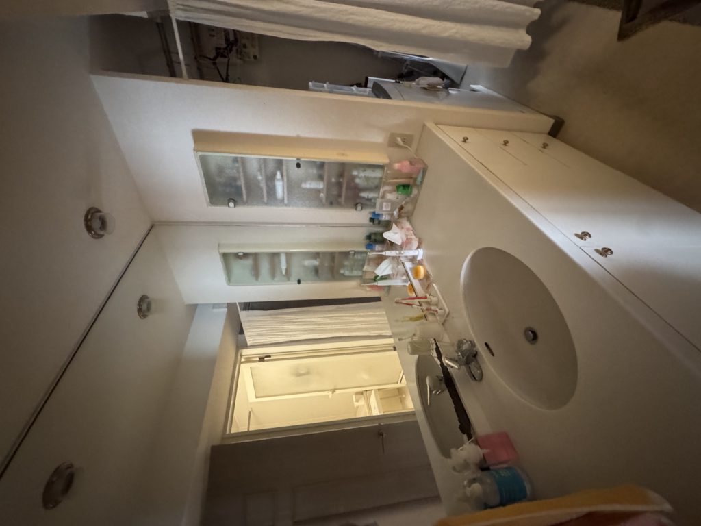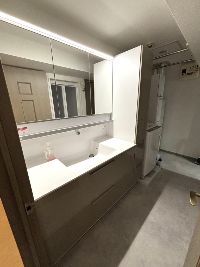 洗面化粧台は右側にあった壁をなくし、キャビネットを設置。