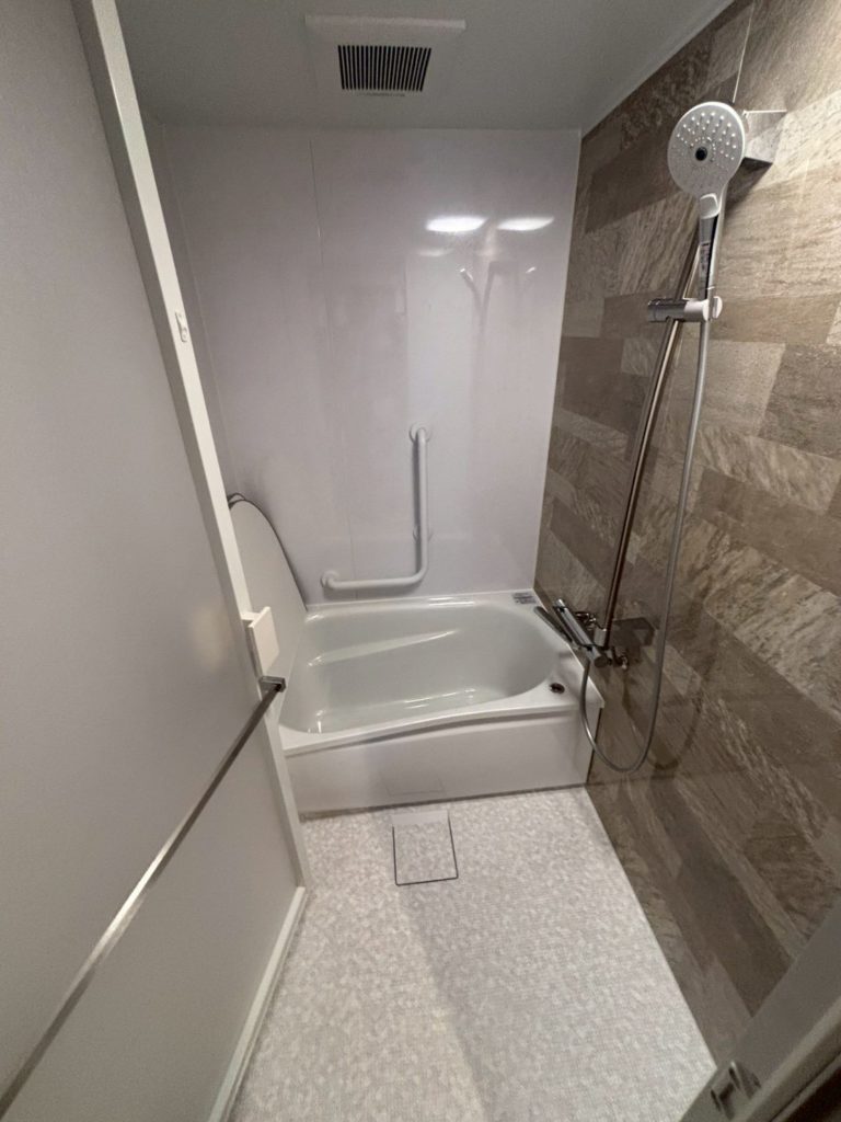 ユニットバスのドア枠が隣のドアにぶつかっていた為、ドア枠をカットすることで対応致しました!