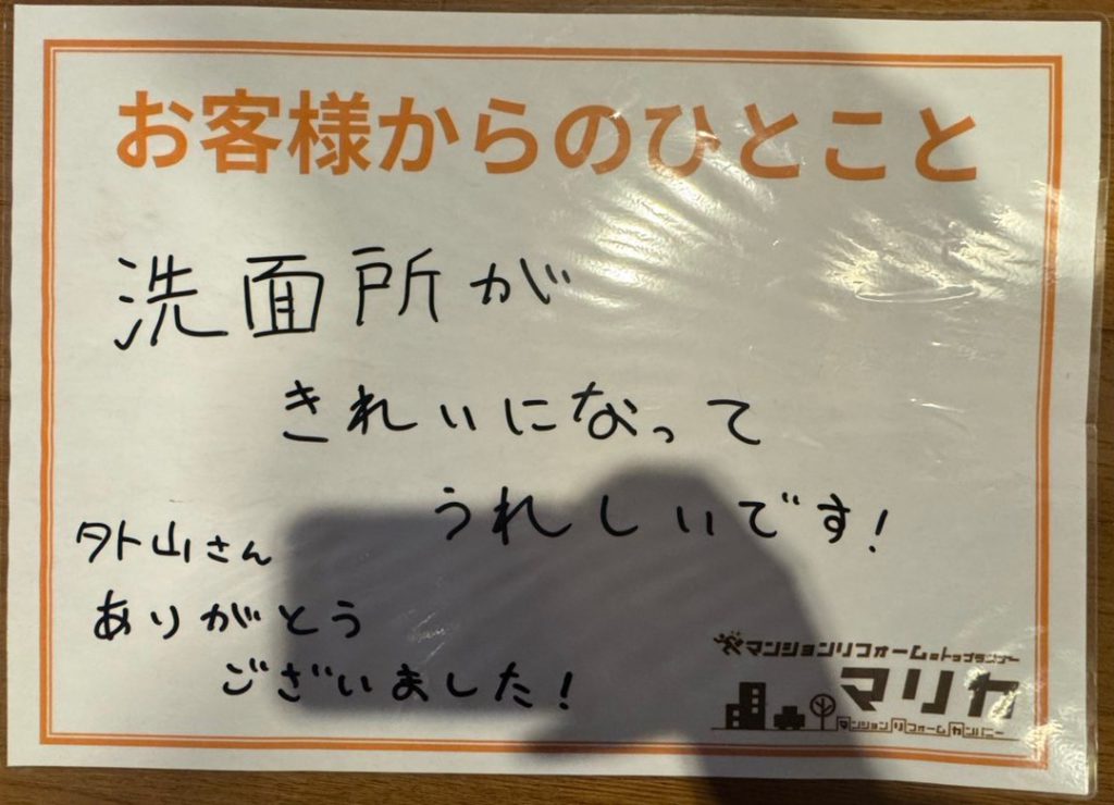 工事にご満足いただけたとのお言葉を頂戴し、大変嬉しく思っております。