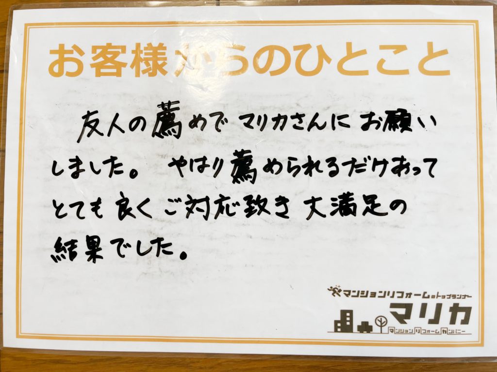 今後もお住まいのことで気になる点がございましたら、お気軽にご相談ください。