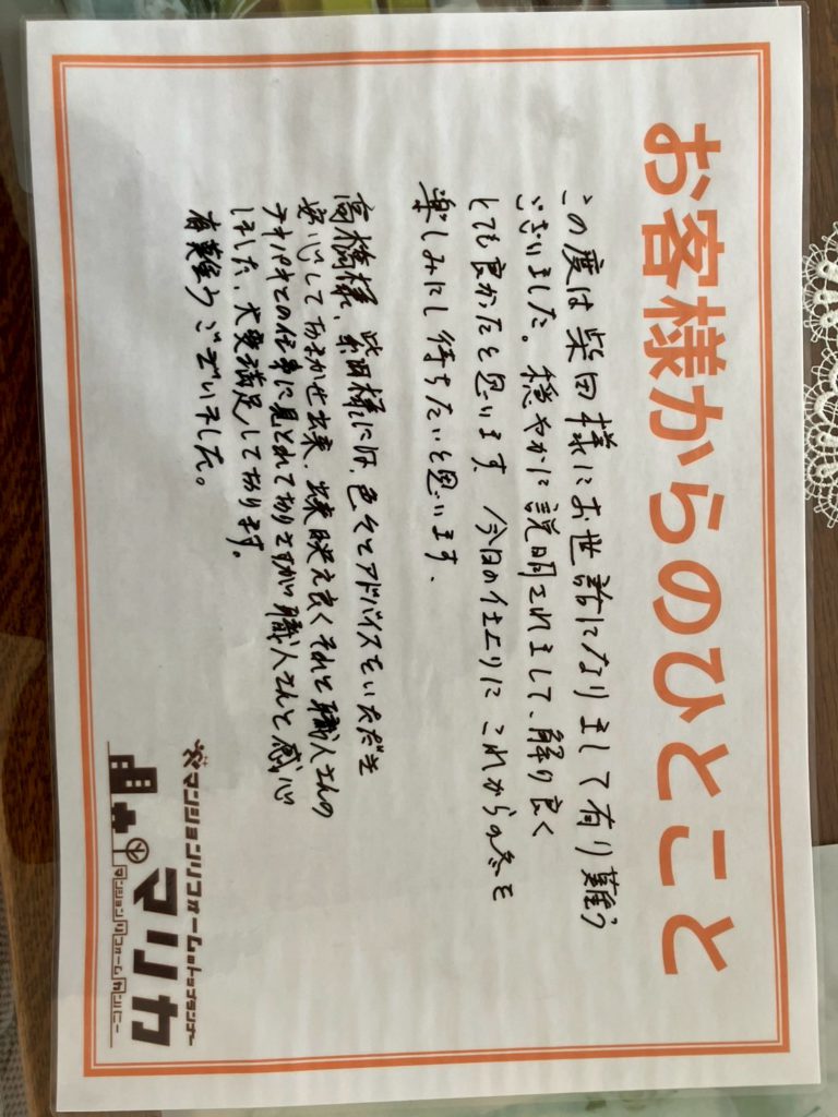 高橋様、柴田様には、色々とアドバイスをいただき安心してお任せ出来、