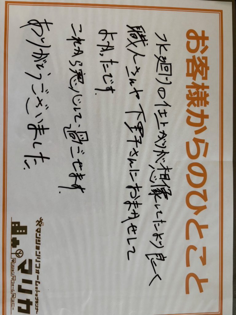 仕上がりにも満足いただけたとの声も頂けてこちらこそ工事中は多くの配慮をしていただいたこと感謝しております!