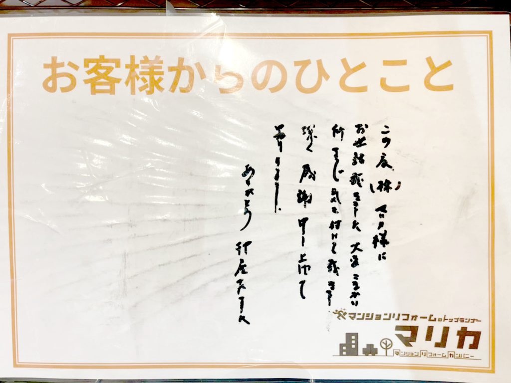 また、工事期間中は家具移動などさまざまな場面でご協力いただき、大変助かりました。