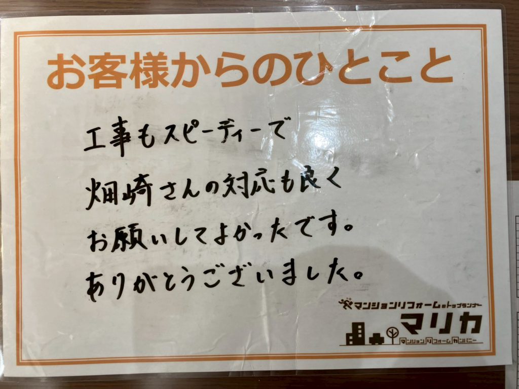 工事もスピーディーで畑崎さんの対応もよくお願いしてよかったです。