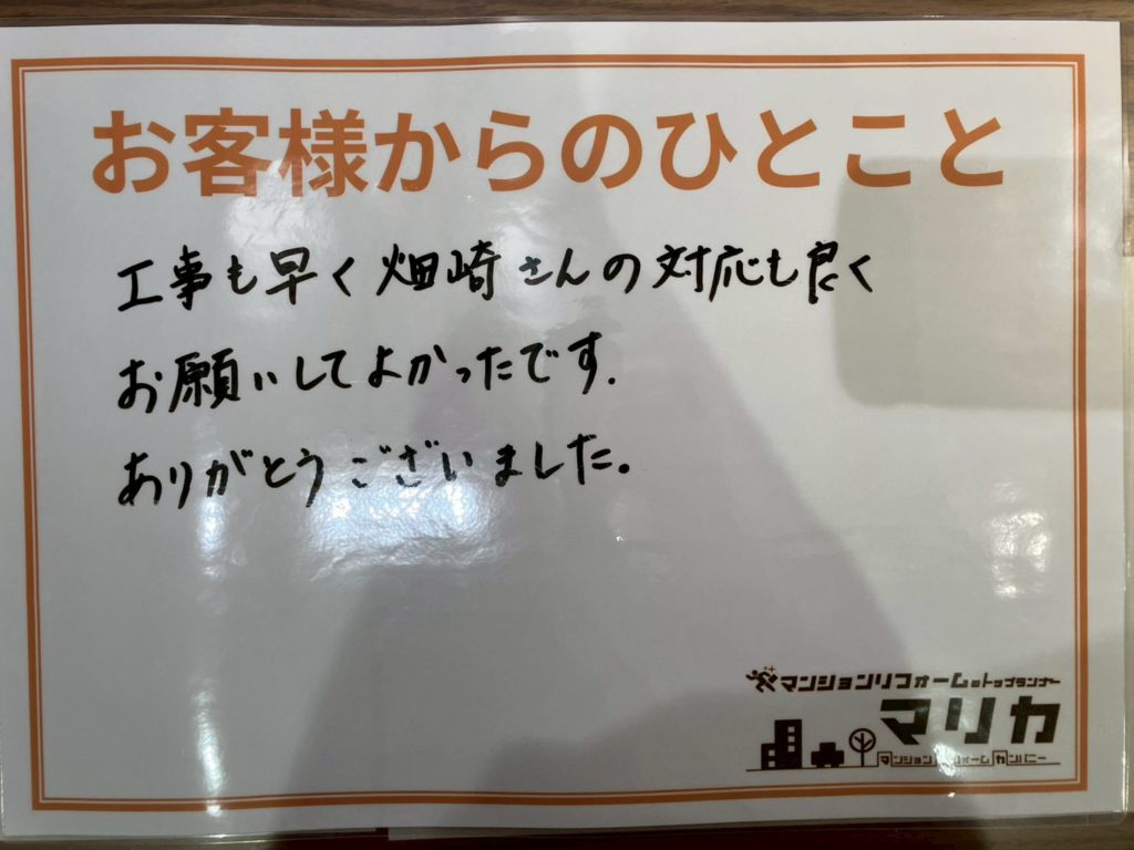 工事も早く畑崎さんの対応も良くお願いしてよかったです。
