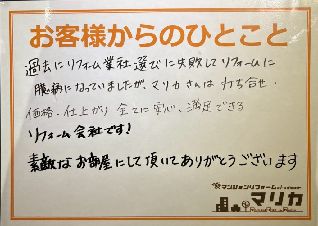 マリカさんは打合せ、価格、仕上がり全てに安心、