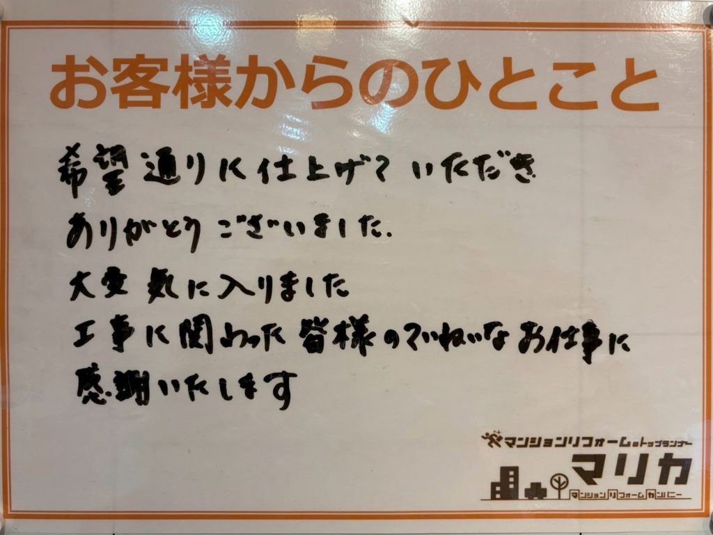 この度はキッチン・洗面化粧台の交換工事をマリカにご依頼いただき誠にありがとうございました。