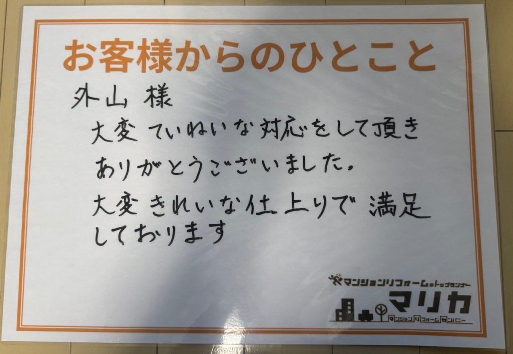 大変きれいな仕上がりで満足しております。